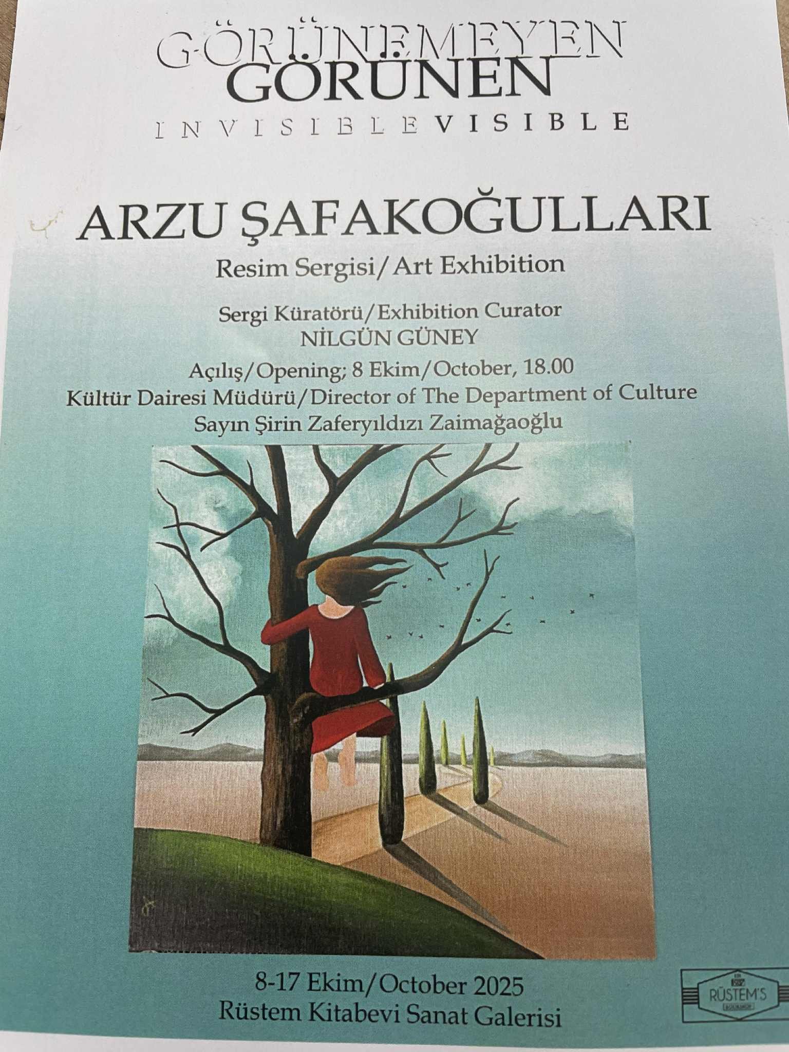 Rüstem Kitabevi Sanat Galerisinde 8-17 Ekim arasında sanatseverlerin beğenisine sunulacak serginin Küratörlüğünü Nilgün Güney yapıyor.