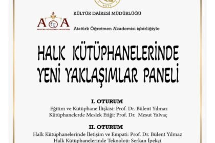 Kültür Dairesi 10 Ekim Cuma günü Atatürk Öğretmen Akademisi’nde, “Halk Kütüphanelerinde Yeni Yaklaşımlar Paneli” düzenleyecek. Moderatörlüğünü Ceyhan Özyıldız’ın yapacağı panelin konuşmac...