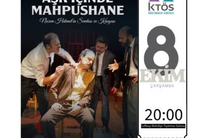 Lefkoşa Belediye Tiyatrosu’nun “Aşk İçinde Mahpushane” oyunu, 5 Ekim Dünya Öğretmenler Günü kapsamında Kıbrıs Türk Öğretmenler Sendikası (KTÖS) üyeleri için sahnelenecek. KTÖS Sosyal ve Kültürel İşler...