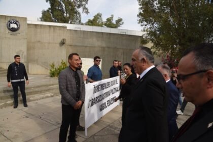 Kıbrıs Türk Öğretmenler Sendikası (KTÖS) ve Kıbrıs Türk Orta Eğitim Öğretmenler Sendikası (KTOEÖS) 24 Kasım Öğretmenler Günü nedeniyle tören yapılan Atatürk Kültür Merkezi (AKM) önünde eylem düzenledi...