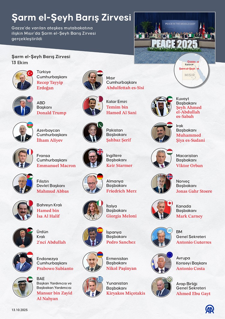 ABD Başkanı Trump, “Burada harika insanlar ve ülkelerini gerçekten önemseyen insanlar var ve bunun nedeni hepsinin bir araya gelip Gazze’yi düzeltmek istemeleriydi. Her şeyi düzeltmek istiyorlar.” şeklinde konuştu.