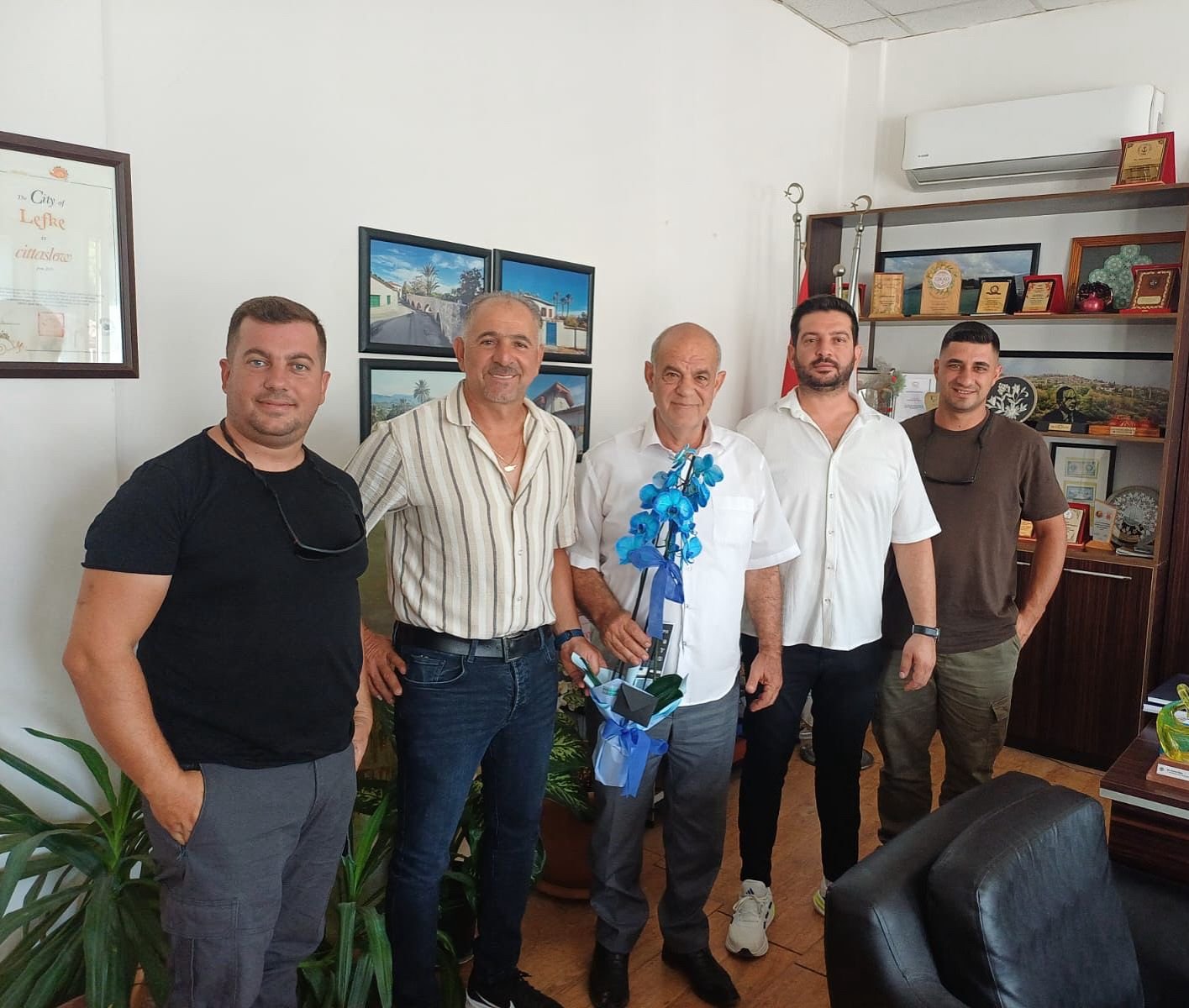 Doğancı Spor Kulübü’nün yeni Başkanı Recep Tozanlı ve Yönetim Kurulu üyeleri, Lefke Belediye Başkanı Aziz Kaya’yı ziyaret etti.