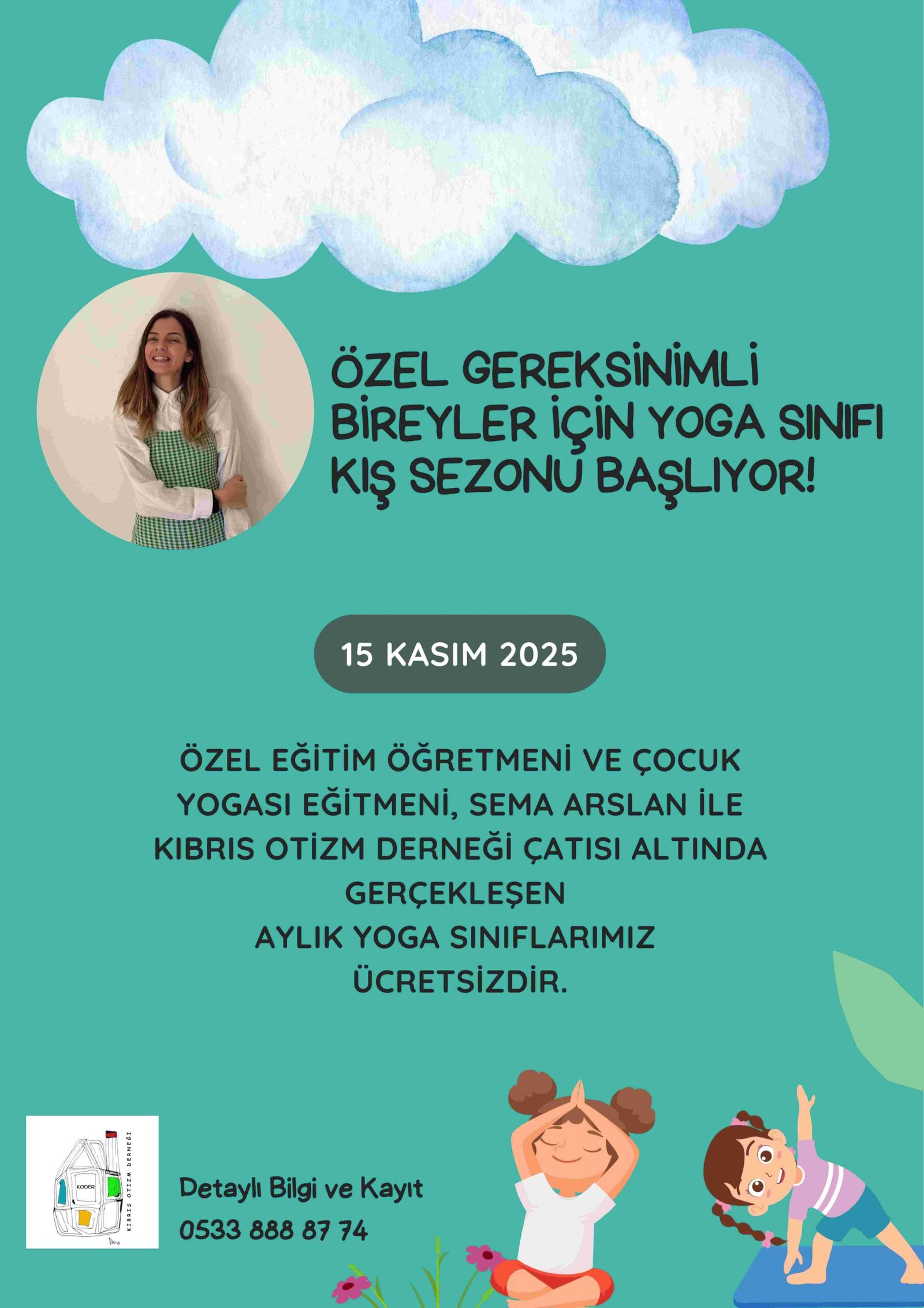 Kıbrıs Otizm Derneği tarafından özel gereksinimli bireylere yönelik düzenlenen ücretsiz yoga kursları cumartesi günü başlayacak.