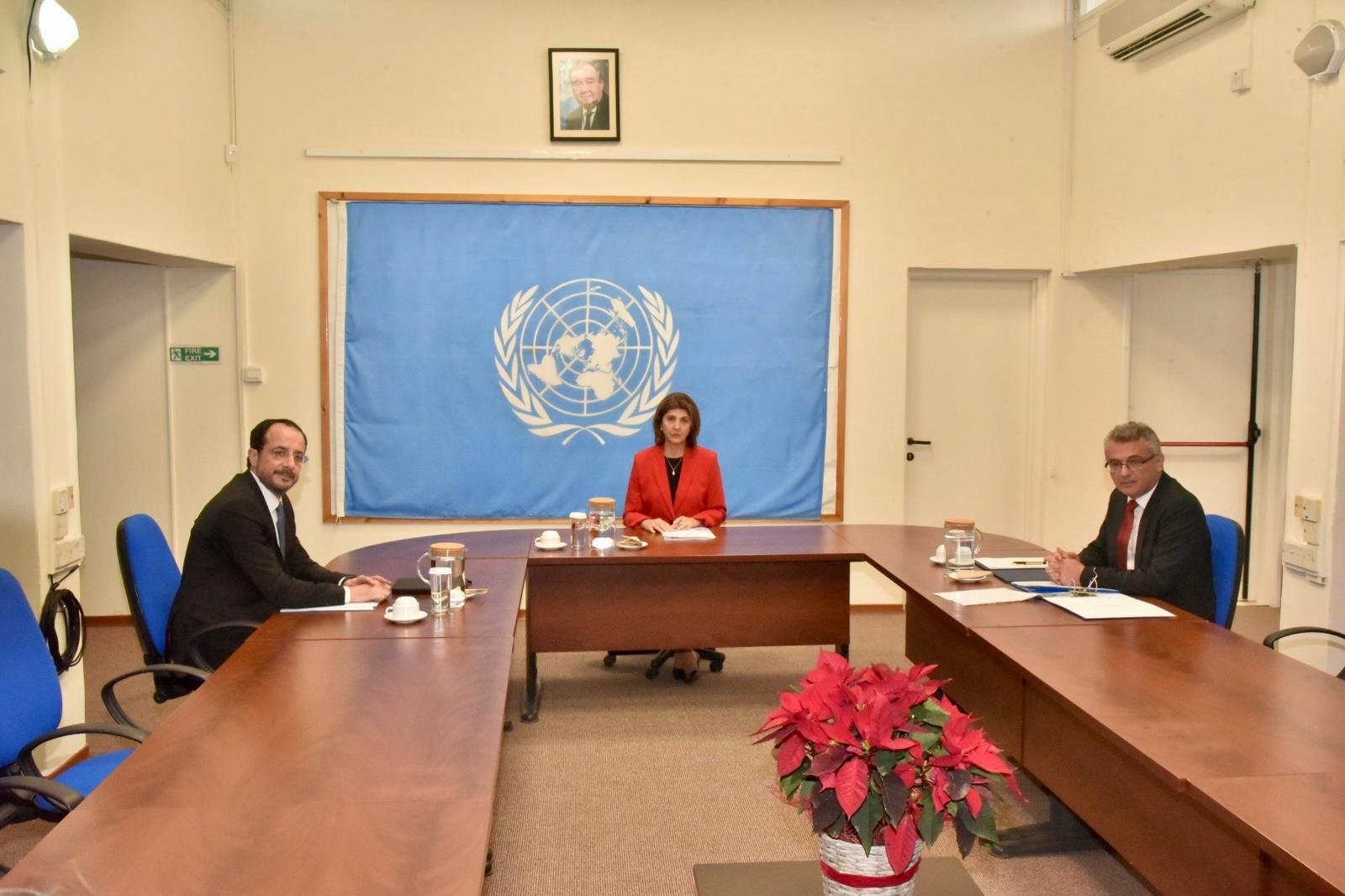 Lefkoşa, 11 Aralık 25 (TAK): Cumhurbaşkanı Tufan Erhürman, Rum Yönetimi Başkanı Nikos Hristodulidis ve Birleşmiş Milletler (BM) Genel Sekreteri’nin Kişisel Temsilcisi Maria Angela Holguin Cuellar’ın görüşmesi tamamlandı.