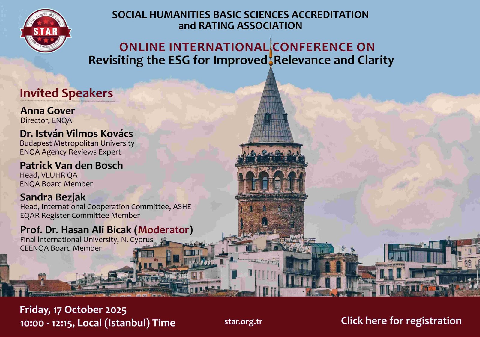 Konferansın moderatörlüğünü, Final Üniversitesi Mütevelli Heyet Başkan Danışmanı, STAR Uluslararasılaşma Komitesi Başkanı ve CEENQA Yönetim Kurulu Üyesi Prof. Dr. Hasan Ali Bıçak üstlenecek.
